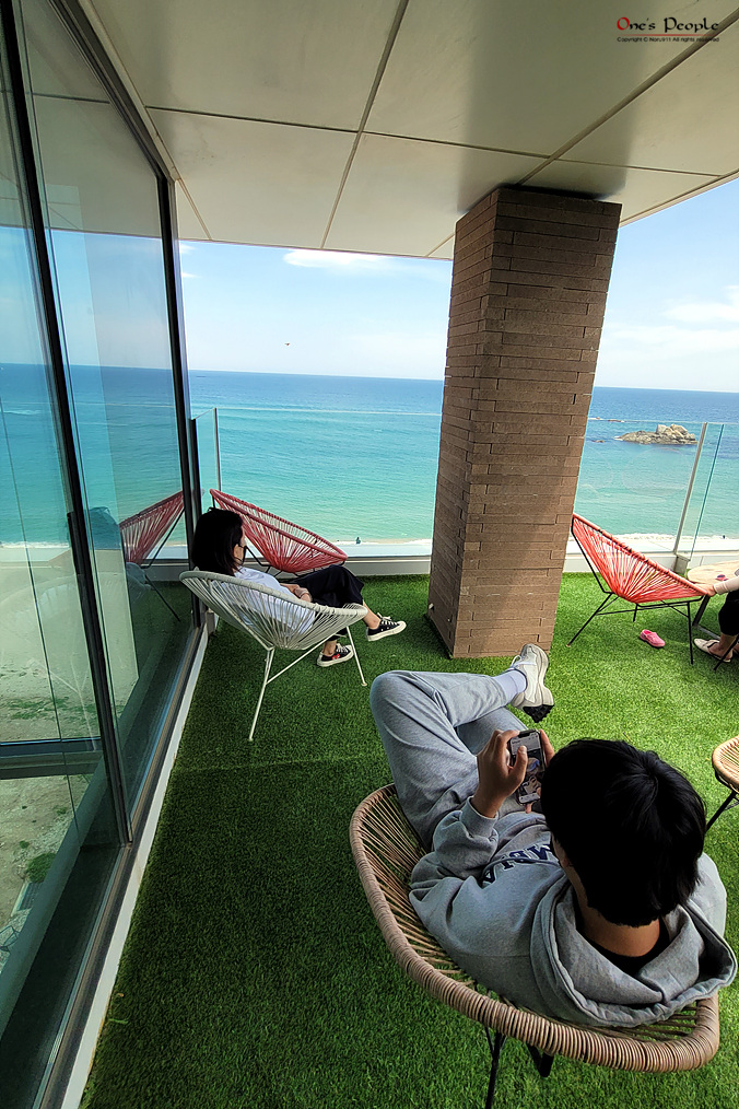 시원한 동해바다를 바라보며 차한잔의 여유를 갖는다.