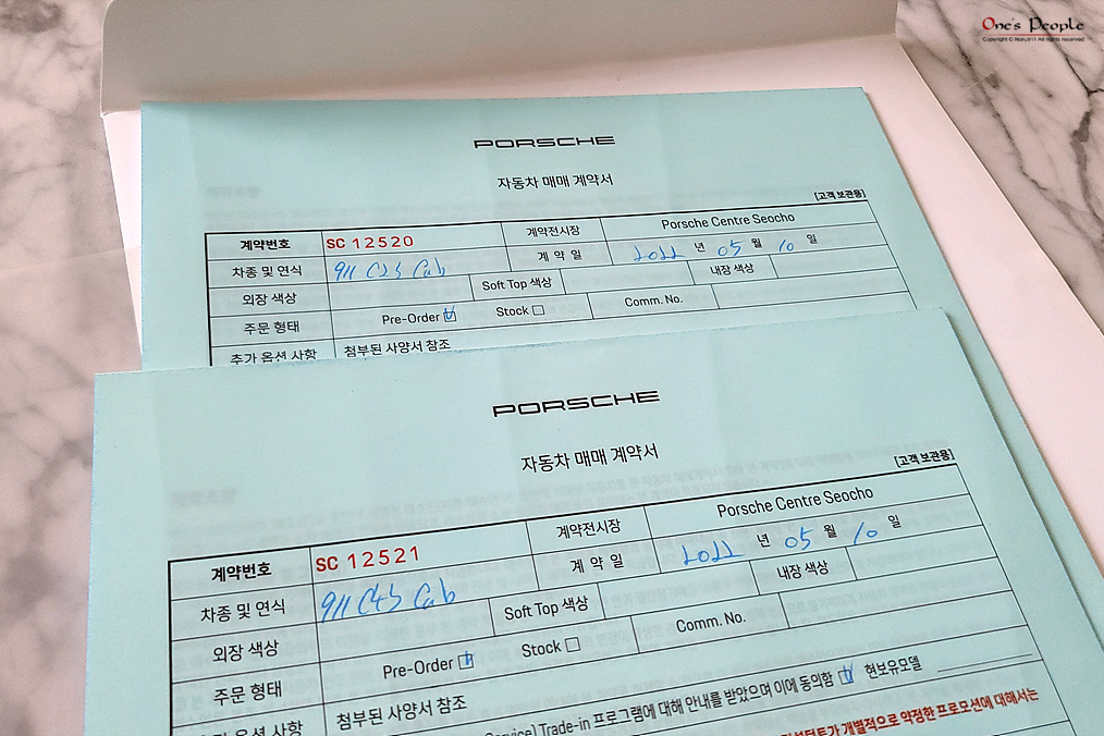 '911 카레라 카브리올레 노말'과 '911 카레라S 카브리올레' 두개를 계약넣어놓았다.